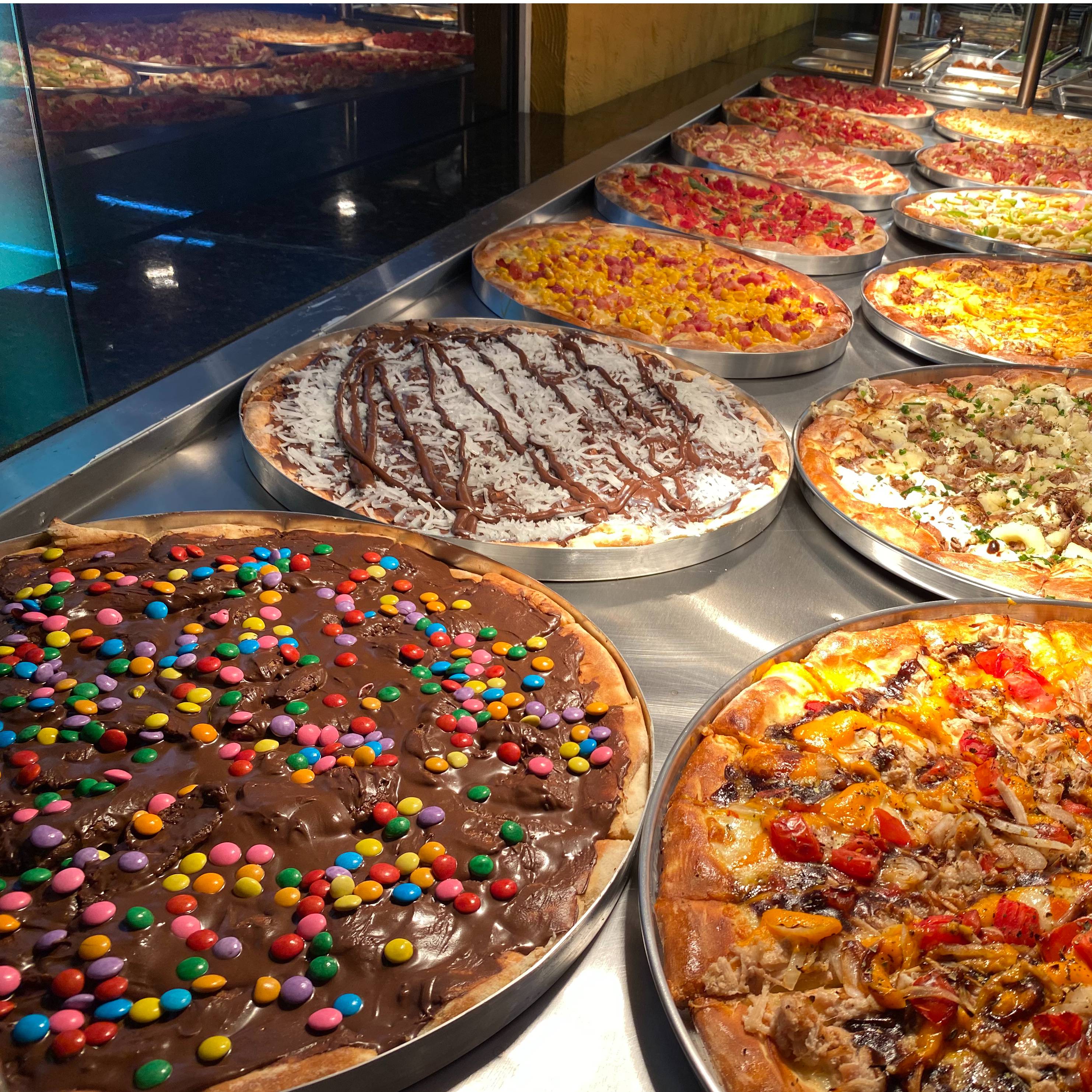 BUFFET DE PIZZAS E ACOMPANHAMENTOS, SORVETES, REFRI À VONTADE! 😱😍